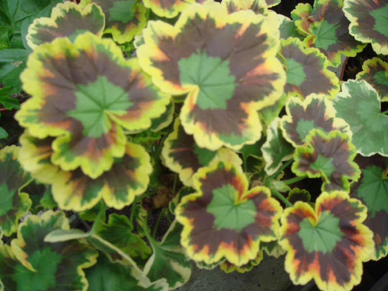Buntblattpelargonien![]() Mit ihren intensiv gefärbten Blättern zeigt diese Art einen seltenen Anblick einer sonst bekannten Pflanzengattung. Ornamental Pelargonium heisst sie im englischen Sprachraum. Die Blühwilligkeit ist mässig, dafür ist sie eine passende Pflanze für Gefässe, Amphoren, in Landhäusern, Rabatten oder gemischten Sommerflorbepflanzungen. |